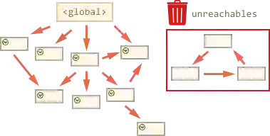 在 JavaScript 引擎中有一个被称作垃圾回收器的东西在后台执行。它监控着所有对象的状态,并删除掉那些已经不可达的。