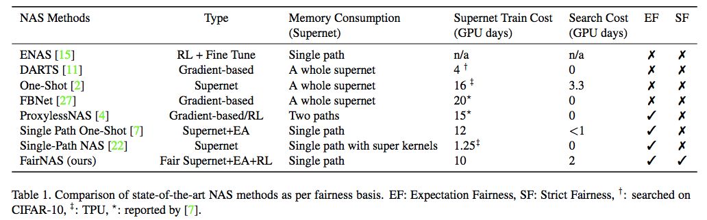 表 1:基于公平性的 SOTA NAS 方法对比。