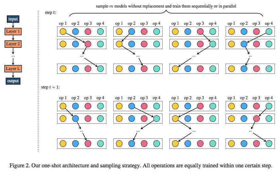 图 2:该研究提出的 one-shot 架构和采样策略。所有运算都在一个特定步内进行同等地训练。