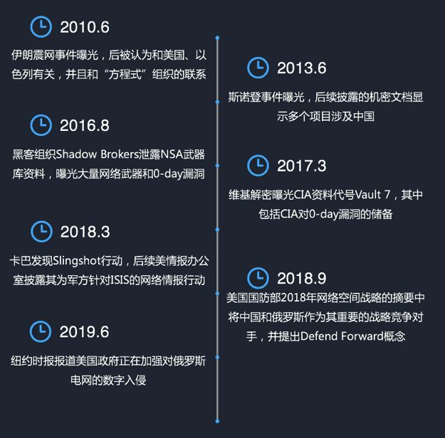 从 2013 年以来,相关情报机构的多次泄密事件展示了其完备的网络空间攻击体系和自动化攻击武器,并暴露了其将中国作为其实施全球网络间谍活动的重要目标之一的相关证据。
