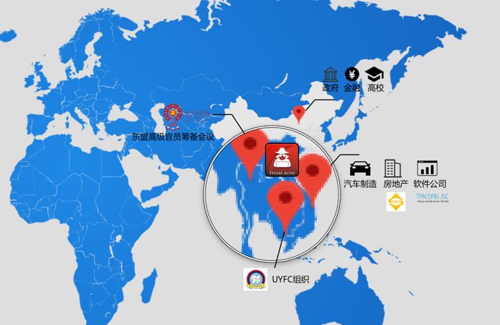 海莲花组织最初主要以中国政府、科研院所、海事机构等行业领域实施攻击,这也与当时的南海局势有关。但在近年来的攻击活动中,其目标地域延伸至柬埔寨、菲律宾、越南等东南亚其他国家,而其针对中国境内的 APT 攻击中,也出现了针对境内高校和金融投资机构的攻击活动。