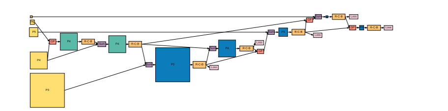 本文中的方法基于 RetinaNet 框架 [23],因为该框架简单、高效。RetinaNet 框架有两个主要的组成部分:一个骨架网络(通常是当前最优的图像分类网络)和一个特征金字塔网络(FPN)。本文算法的目标是为 RetinaNet 框架发现更好的 FPN 架构。图 2 所示为 RetinaNet 架构。