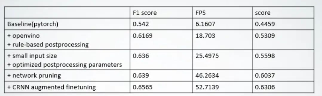 由于比赛需要兼顾性能分,算法的轻量化工作十分重要,可以通过模型选型,剪枝,量化,模型复用等方法提高推理性能。