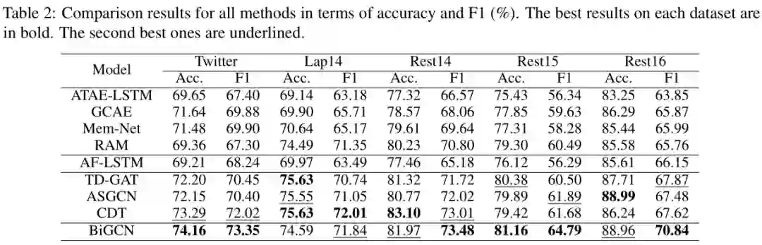 为此,该文首先创造性地提出了句法和词汇的概念层次,并以此为基础建立了层次句法图和层次词汇图,随后设计了双层交互式图卷积网络以充分融合层次句法和词汇图。论文在五个基准数据集上进行了大量实验,结果表明 BiGCN 方法达到了最佳性能。