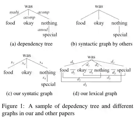 句法信息可以使依赖性信息保留在冗长的句子中,并有助于缩短方面词和观点词之间的距离。最近的一些研究(Zhang 等人,2019;Huang 和 Carley,2019; Sun 等人,2019)利用基于图的模型来集成句子的句法结构,并且表现出更好的性能。