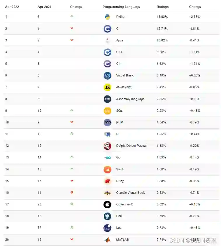 在TIOBE发布的4月编程语言排行榜中,知名数学算法分析语言MATLAB即将跌出前20,目前刚好排在第20名,这是MATLAB在近十年来首次出现在该位置。至于下降原因,TIOBE CEO Paul Jansen分析道,MATLAB通常与MathWorks的Simulink模型结合使用,每半年发布一次,但由于授权费用昂贵,因此其替代品也在飞速追赶,例如排名第一的Python和本月排名从32位上升到26位的Julia。