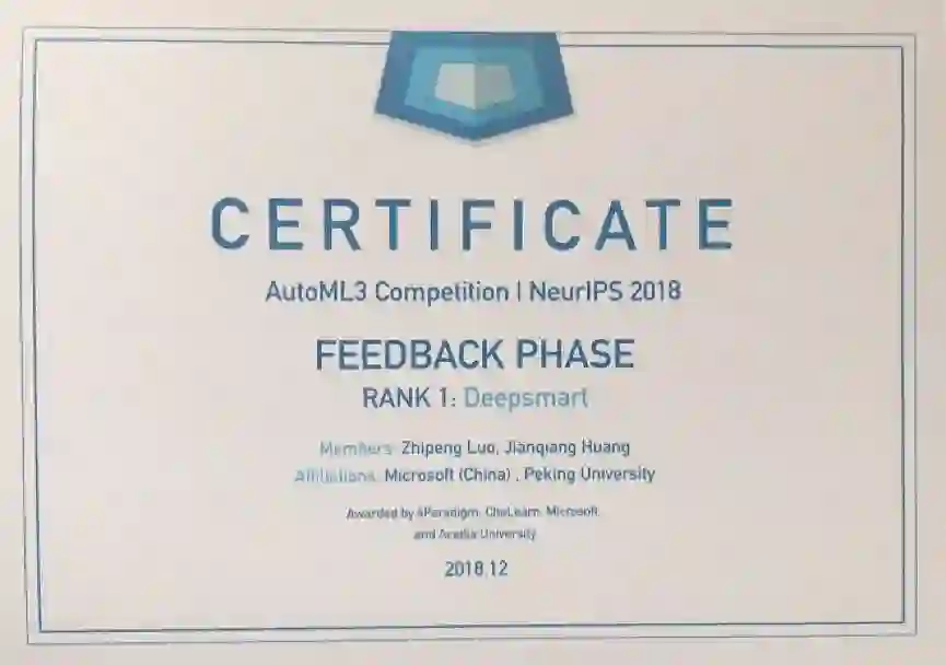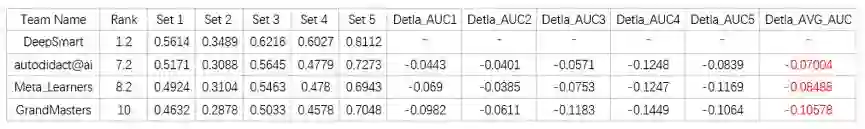 最后感谢主办方提供高质量的数据和竞赛平台,也给我们提供了在 AutoML 领域中学习和实践的机会。感谢所有的参赛选手,让我们不断努力把效果做到极致。祝贺所有的 Top 队伍!愿下一届 AutoML 竞赛办得更加成功!