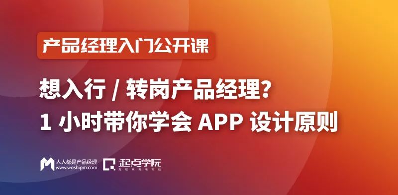 从用户中延伸出的APP设计原则有很多,在此就不赘述了。为了帮助更多0经验产品新人快速了解产品设计知识,人人都是产品经理社区&起点学院特邀东道数字产品总监,北京大学软件工程硕士@高振铭老师,用1个小时的时间,跟大家聊聊产品新人不得不知的产品设计常识。