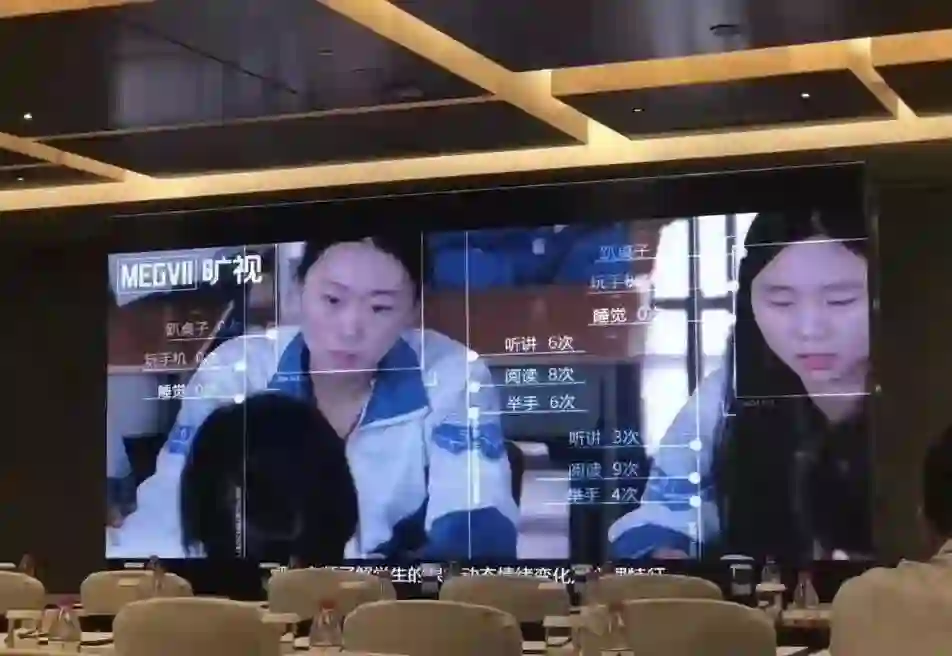 在梨视频的采访中,校方介绍,这套系统不仅能对进入教室的学生进行全程人脸识别,还能监测到学生抬头低头,是否玩手机,是否发呆等行为细节。
