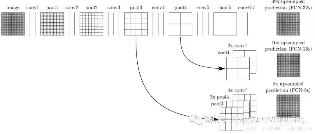 比较重要的发现是,分类网络中的全连接层可以看作对输入的全域卷积操作,这种转换能使计算更为高效,并且能重新利用ImageNet的预训练网络。经过多层卷积及池化操作后,需要进行上采样,FCN使用反卷积(可学习)取代简单的线性插值算法进行上采样。