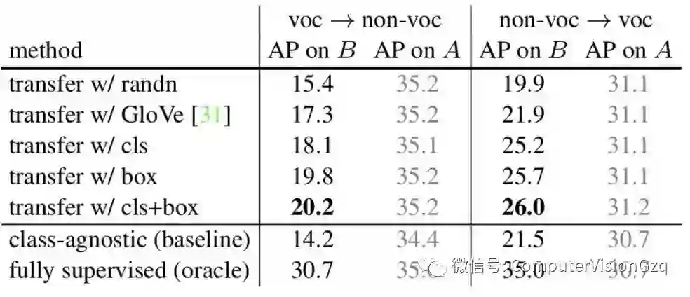在第一阶段,只使用A∪B中类的边界框注释来训练一个Faster R-cnn,然后在第二阶段训练附加的mask head,同时保持卷积特征和边界框head的固定。这样,每个c类的类特定检测权重wc可以被看作是在训练第二阶段时不需要更新的固定类emdet层叠向量。