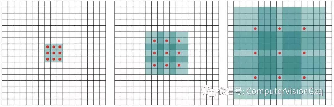 池化在分类网络中能够扩大感知域,同样降低了分辨率,所以提出了膨胀卷积层。