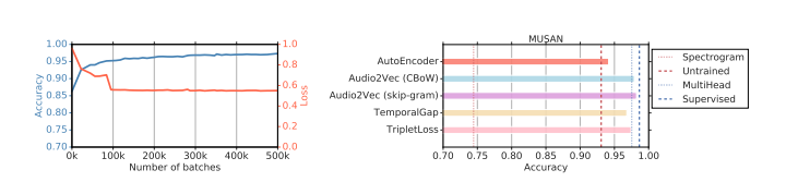 他们同样推荐了TemporalGap,这是另一种自我监督的学习过程,它可以估计随机抽取的任意两对音频片段之间的时间距离。