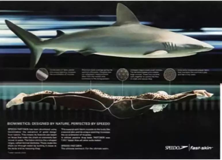 仿生鲨鱼皮最直接的应用当属鲨鱼皮泳衣。据统计,曾经在1个月内产生的16项游泳赛事新的世界纪录中,有14项都是由穿着鲨鱼皮泳衣的运动员所创造的,从某种程度上也可以反映出鲨鱼皮泳衣的非凡功力了。