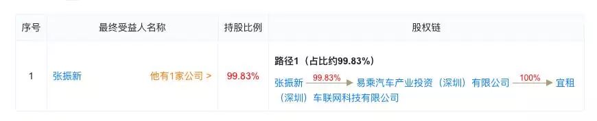 值得注意的是,在股权关系上,铅笔道注意到宜租租车的实际控制人为张振新,而先锋集团董事长也叫张振新。