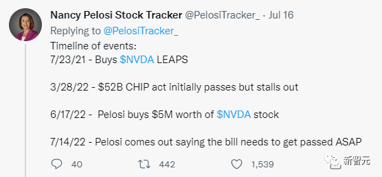 佩洛西的小算盘是这么打的,芯片法案通过的消息一出,各大芯片厂商和科技巨头股价飙升,自己坐收渔利成最大赢家。