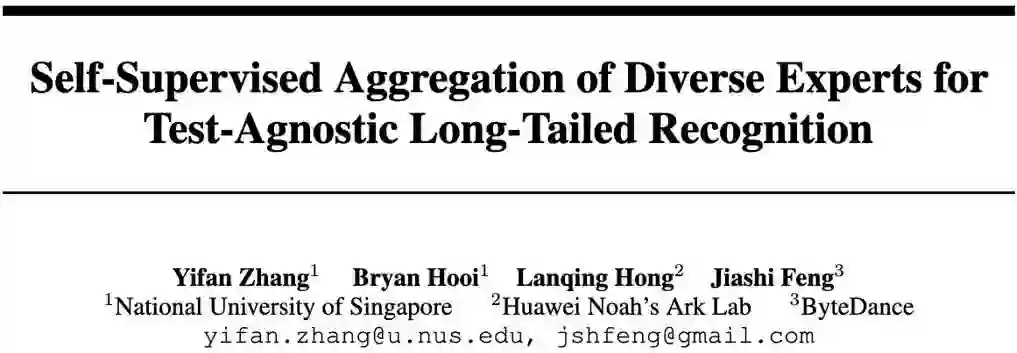 该工作呼吁大家研究测试分布未知的长尾识别问题(Test-agnostic Long-tailed Recognition)。该任务旨在从一个固定的长尾分布训练集上训练一个神经网络模型,并期望它能在服从不同类别分布(包括均匀、长尾、反向长尾分布)的测试集上表现良好。为了解决该任务,该论文提出了 SADE(Self-supervised Aggregation of Diverse Experts)算法,在多个数据集的不同类别分布测试集上均取得了显著的性能提升。