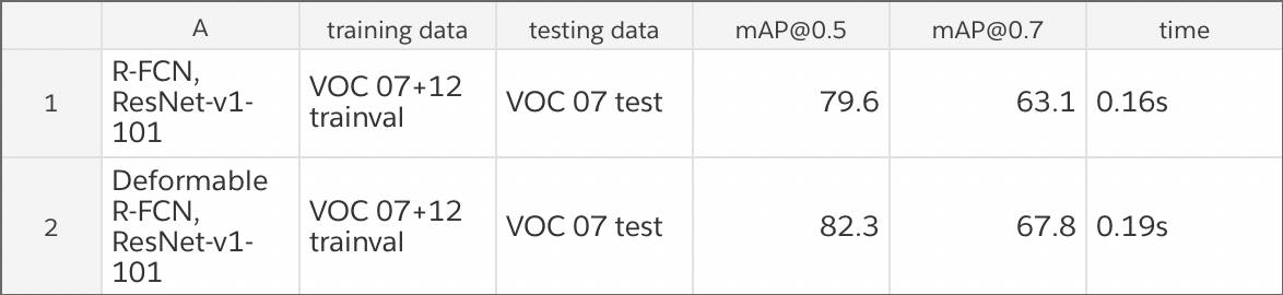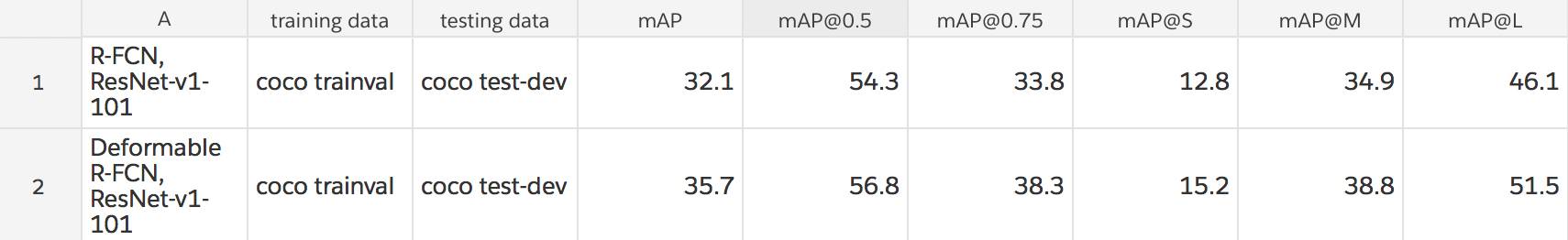 目前其仅包含使用 R-FCN 的可变形卷积网络。使用 DeepLab 的可变形卷积网络将在不久之后发布。
