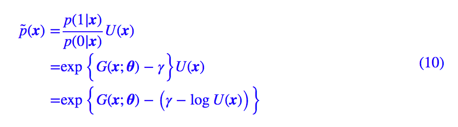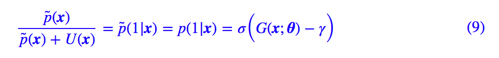 说白了,NCE 的做法就是将它转化为二分类问题,将真实样本判为 1,从另一个分布采样的样本判为 0。