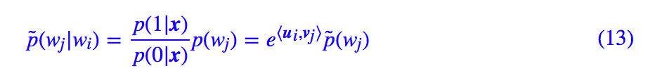 大家可以看到,左边就是两个词的互信息。本来我们的拟合目标是两个词的内积等于条件概率 p̃(wj|wi)(的对数),现在经过负采样的 Word2Vec,两个词的内积就是两个词的互信息。