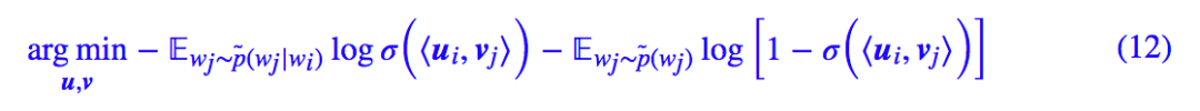 这个式子看着有点眼花,总之它就是表达了“语料出现的 Skip Gram 视为正样本,随机采样的词作为负样本”的意思。