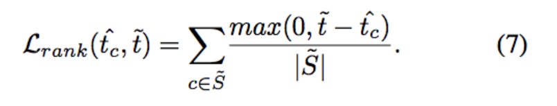 Lrank: 针对 {S+} 的类别,即为在图片中出现数量 5 以上的类别,我们希望我们所预测出的 t^c >= 5。
