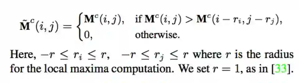 举例来说辨认鸟的时候,CAM 的结果可能会集中(能量最强)在鸟嘴的部分,而上面就是用简单的方法找出哪个点是最强的点 - peak。透过这个方式我们可以将 Mc 转换成 M^c,使用 local maximum 的点,使用 multi-label soft-margin loss,就可以将每个物体的热力图分隔出来。(备注:local maxima (peaks) 细节请看CVPR2018论文Weakly Supervised Instance Segmentation using Class Peak Response)。
