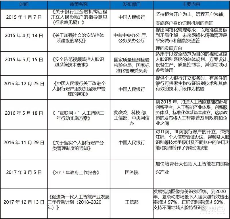 ▲人脸识别相关政策
