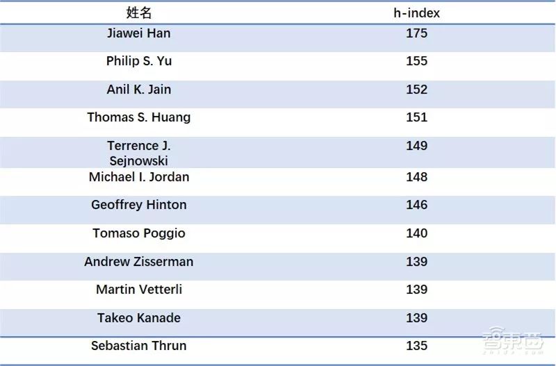 h-index 排在前十二的相关学者位列如下: