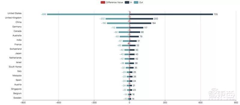 ▲人脸识别全球人才迁徙图