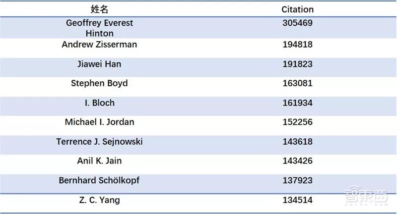 Citation 排在前十的相关学者位列如下: