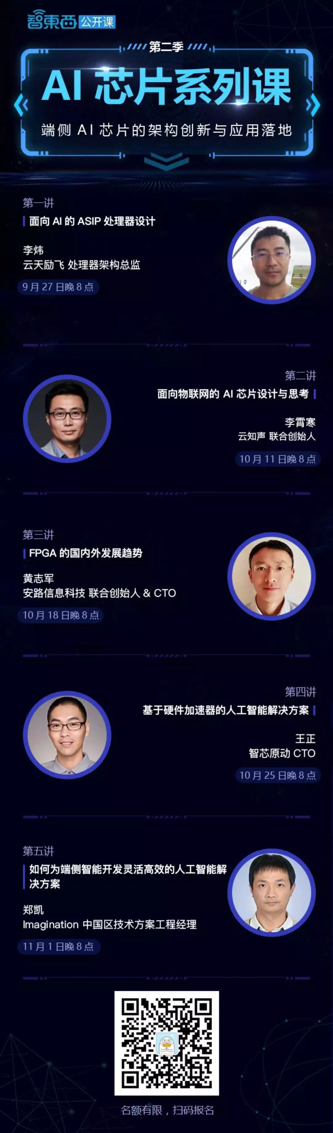 AI芯片系列课第二季正式启动!本季我们邀请到云天励飞首席处理器架构总监李炜、云知声联合创始人李霄寒、安路信息科技CTO黄志军、智芯原动CTO王正、Imagination中国区技术方案工程经理郑凯等五位技术大牛,聚焦端侧AI芯片的架构创新与应用落地,对AI芯片技术创新、挑战及应用落地进行讲解。感兴趣的朋友戳开课程表报名!