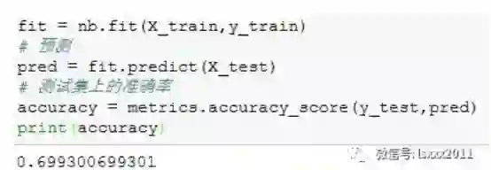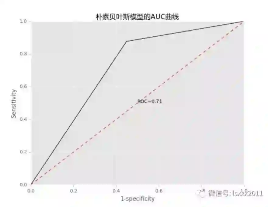通过构建朴素贝叶斯模型,得到的样本测试集准确率约为70%。