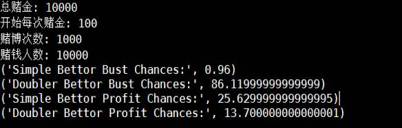 我用蒙特卡洛模拟后,发现伯爵夫的双倍法破产,破产率很高,赢钱率也不如simple。