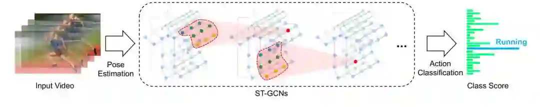 这种图的构造方式还在交通网络中用的比较多,来预测交通流量。构造出了骨架序列的spatial-temporal graph(STG),很多论文中采用graph Spatial-Temporal Networks对骨架STG进行分类。下面来介绍几篇具有代表性的文章: