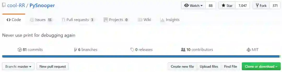 目前,PySnooper在GitHub上已经获得7047个Star,371个Fork(GitHub地址:https://github.com/cool-RR/PySnooper)