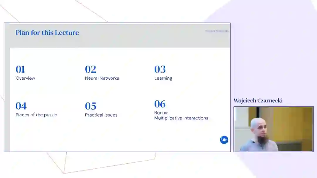 神经网络是2006年以来深度学习革命的模型,但其基础可以追溯到20世纪60年代。在本次讲座中,DeepMind研究科学家Wojciech Czarnecki将介绍这些模型如何运行、学习和解决问题的基础知识。他还将介绍各种专业术语/命名惯例,为进一步的高级讲座做准备。最后,他简要地介绍了神经网络设计和开发的更多研究方向。
