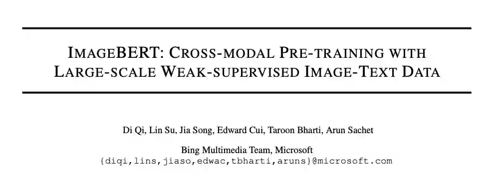 近期,来自微软的Bing 多媒体团队在arXiv上也同样发表了一篇将BERT应用到视觉中的论文《ImageBERT: Cross-modal Pre-training with Large-scale Weak-supervised Image-Text Data》