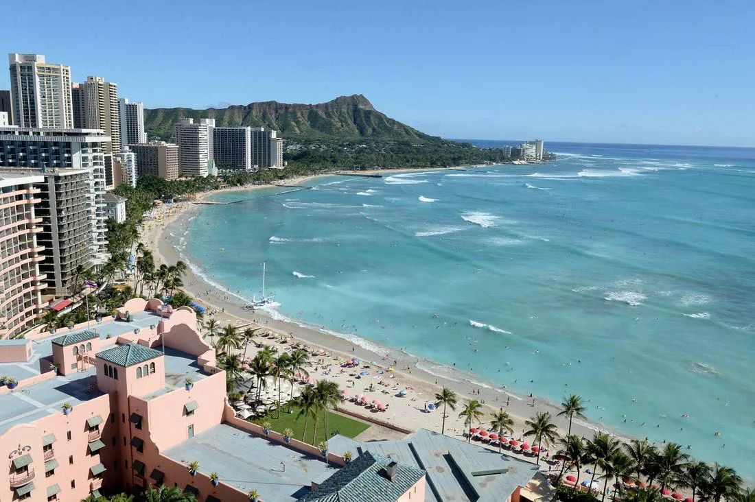 俯瞰威基基海滩的海岸线。2015年10月23日,第6届夏威夷欧洲电影节颁奖典礼在莫阿那冲浪者酒店举行。| 照片:Michael Kovac/WireImage