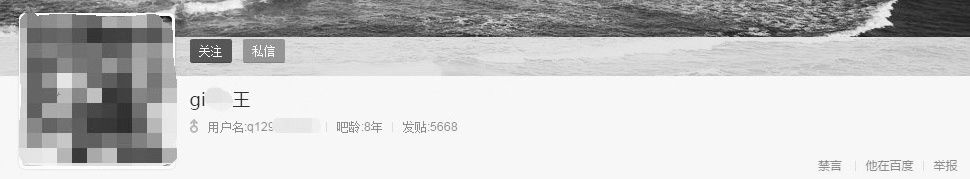 我通过gi***王的ID往下追查找到了他的贴吧帐号,他的贴吧用户名正是该ID。