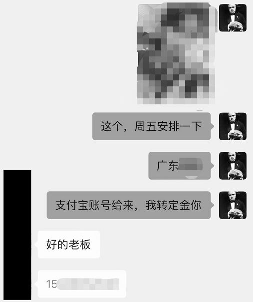 一天后,我再次联系老鸨,跟他要支付宝的账号说要转定金给他。