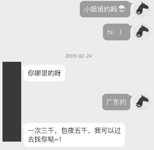 没等多久就回复我了:“可以约,一次三千,包夜五千,能全国跑”