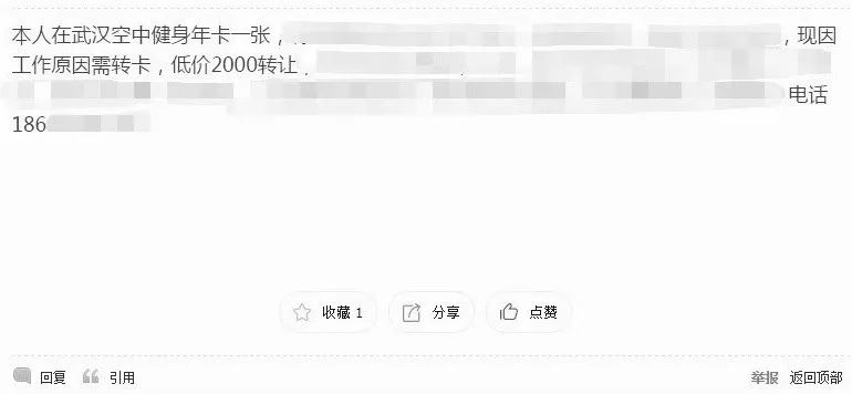 我开始检索这个QQ遗留在互联网的信息时,找到了他在15年发布的一个帖子——转让健身卡