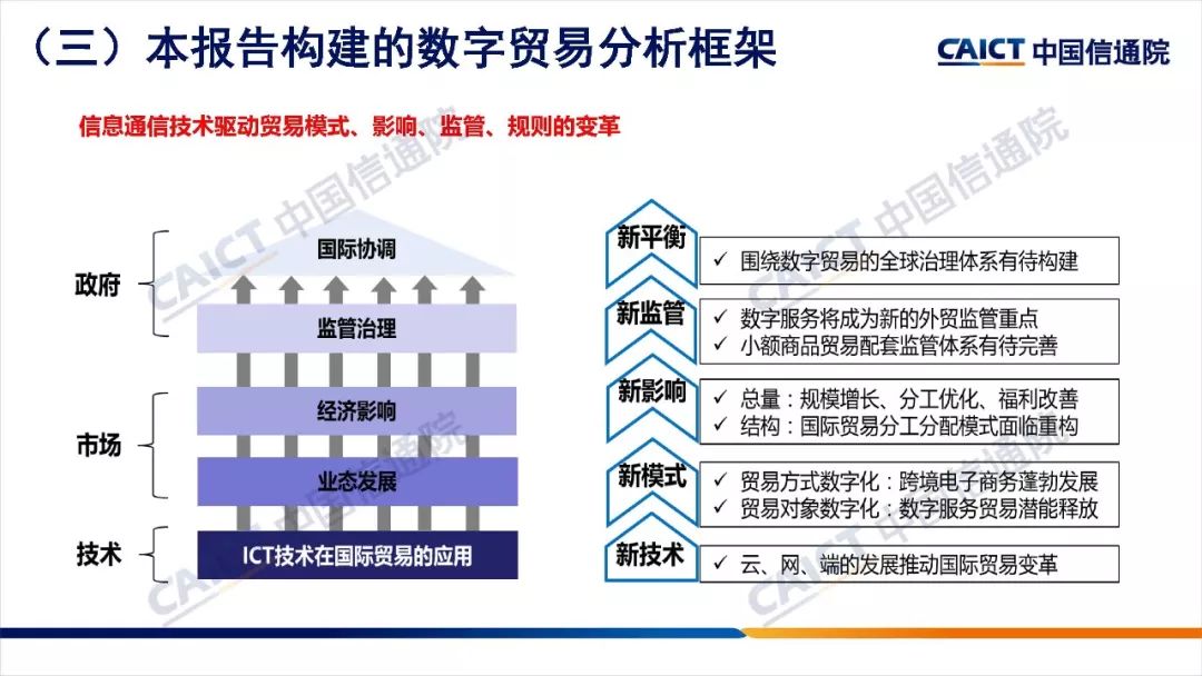一是新技术。信息通信技术将成为生产制造、交通物流、跨境支付外又一个对国际贸易影响重大的技术,其不仅提升了国际贸易效率,更是重塑了国际贸易的生态。