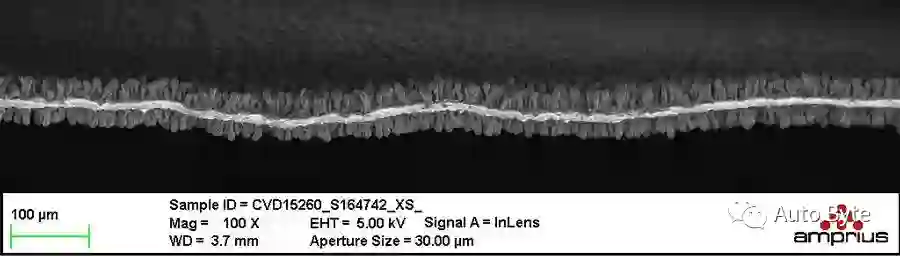 (电子显微镜扫描的Amprius硅纳米线阳极横截面)
