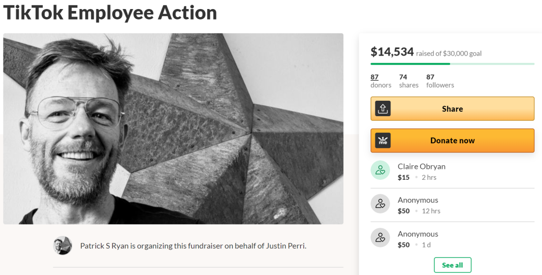 Patrick Ryan 是 TikTok 的一位技术经理,于今年 3 月份加入 TikTok,他在周一(24 日)向旧金山联邦法院提起诉讼,并发起了一场众筹活动。