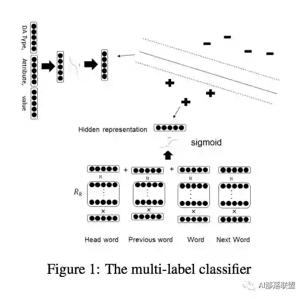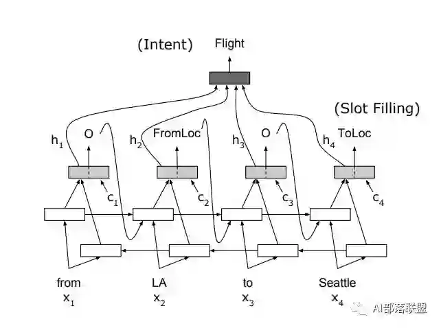 这个方法也是基于ATIS数据集做的。输入为词向量,每个词性看作权重向量 ,每个词在其路径的运算为词向量与词性权重向量的点积运算。基于根节点的输出向量做意图分类;采用基于Viterbi进行全局优化,采用基于tri-gram语言模型极大化标注序列进行槽填充。