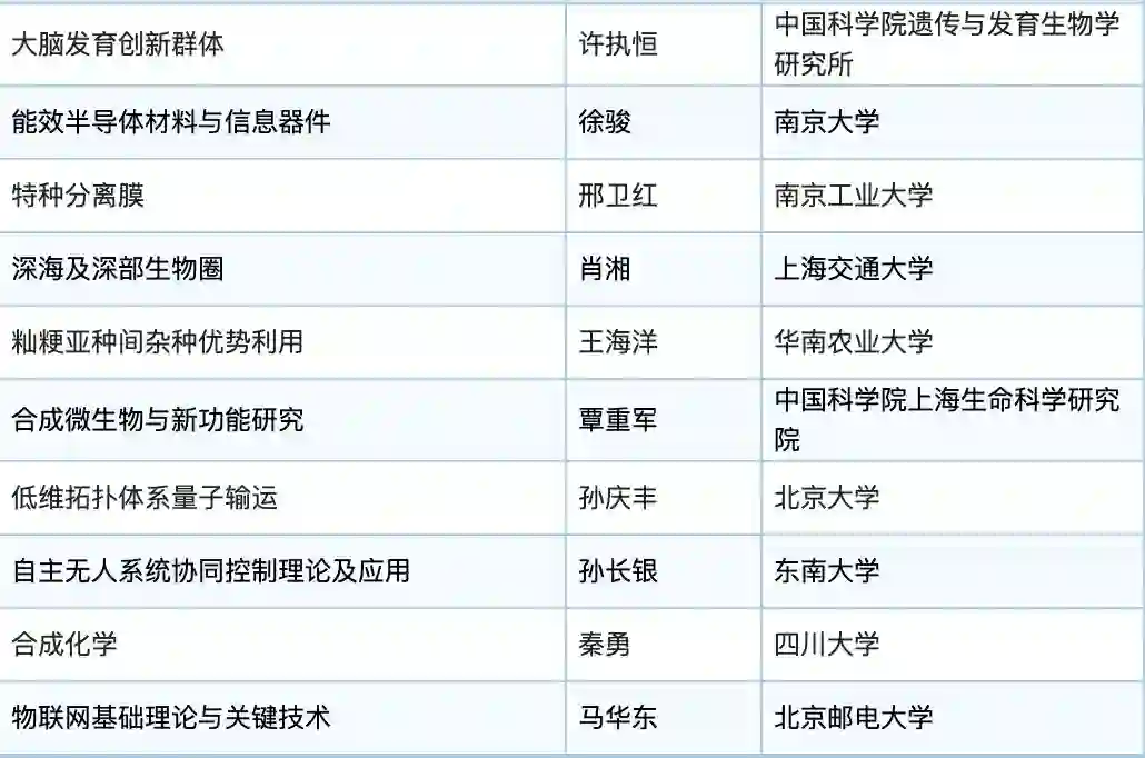 国家自然科学基金委也公布了创新研究群体项目资助名单,今年共有34家单位获得45项创新研究群体项目,其中北京大学获得4项,居各单位之首,清华大学和南京大学获得3项,并列第二位,上海交通大学、天津大学、中科院生物物理研究所、中科院遗传与发育生物研究所各获得2项。