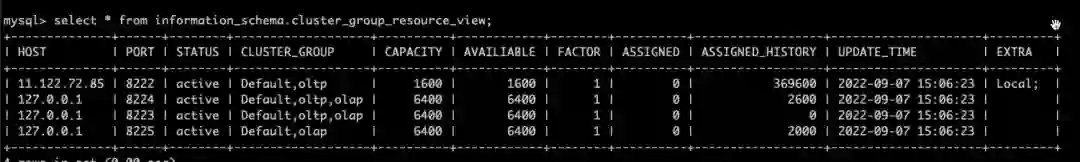 Client-2连接olap cluster,使用tpch数据改造后的sysbench,但为看出效果,这里也没有使用很大的长查询,仅为了使其足够使用多机资源。