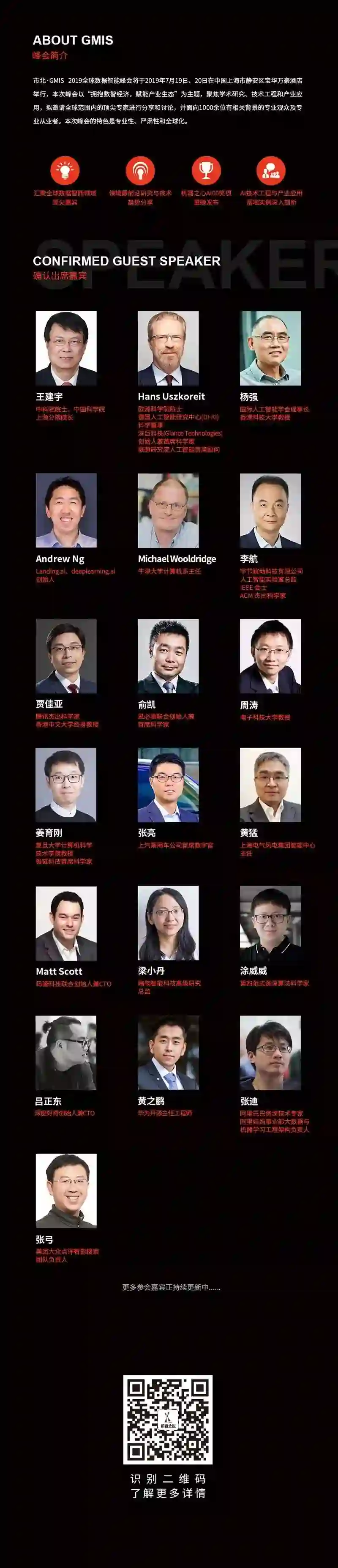 本次峰会设置主旨演讲、主题演讲、AI画展、「AI00」数据智能榜单发布、闭门晚宴等环节,已确认出席嘉宾如下:
